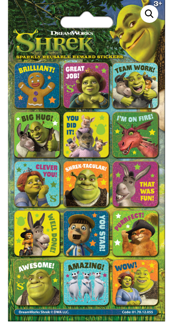• Shrek Characters: features fun stickers with Shrek, Donkey, and friends.