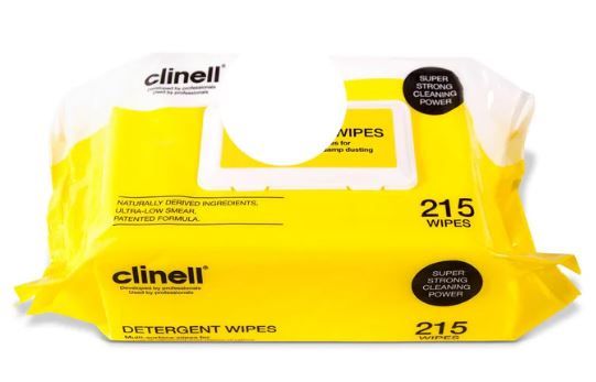 Clinell Detergent Wipes 220 x 280mm Pack of 215 (yellow)