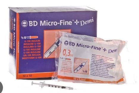324826 BD Micro-Fine + Demi Insulin Syringe 0.3ml with 30G x 8mm Needle - Pack of 100