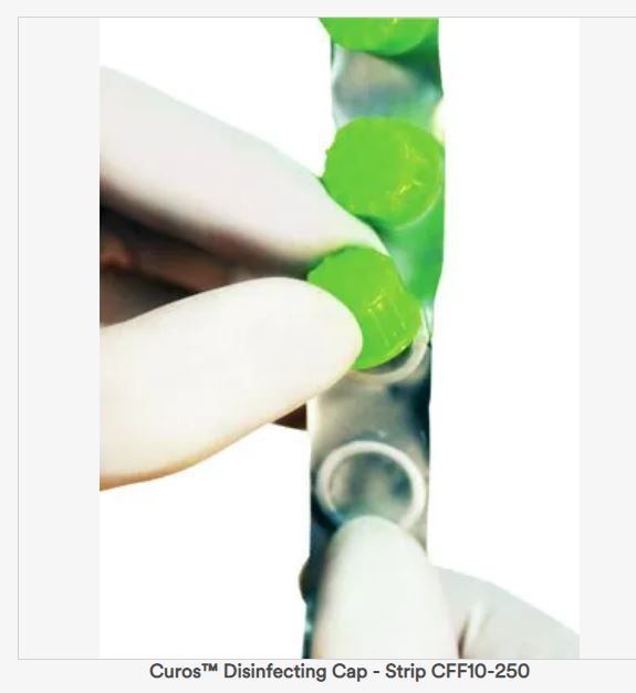 • Protective Barrier Against Contamination: caps remain in place after disinfection, acting as a physical barrier to protect connectors from touch contamination between accesses.