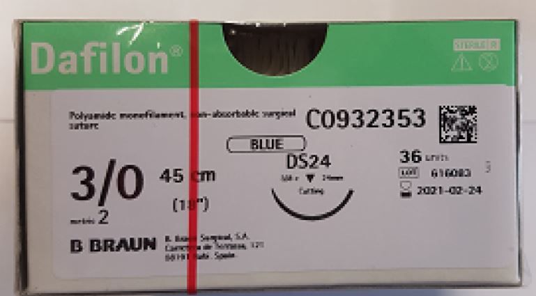 B.Braun Dafilon Suture 3/0x45cm+24mm Dermaslide® Needle (36 Pack)