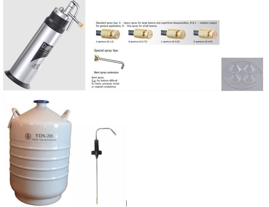 • Supplied with a set of spray applicators which are suitable for treating the most common lesions