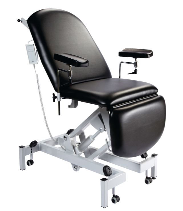 Fusion Phlebotomy Chair - Black, Electric height adjustment, gas assisted head and foot section