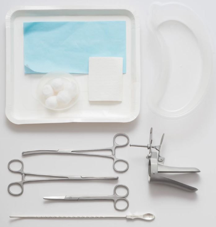 • 1 x Rampley Sponge Holding Forceps 24cm, 1 x Mayo Scissors Curved 19cm, 1 x Galabin Uterine Sound Malleable 32cm
