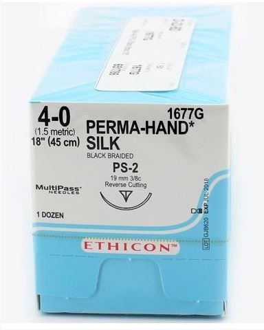 Johnson & Johnson Ethicon Mersilk Sutures, 45cm (l), Size 4-0 + 19mm PS-2 RC Needle (Pack of 12).