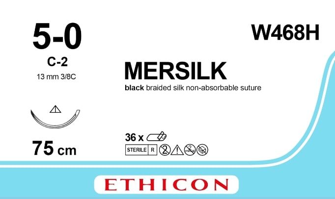 Johnson & Johnson Ethicon Mersilk Sutures, 75 cm (l), Size 5-0 + 13mm C-2 CC Needle (Pack of 36)