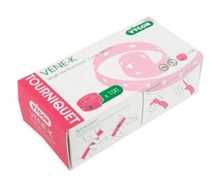 Vene-K Single Use Quick Release Tourniquet, Adult (100 Pack) latex free
