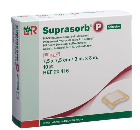 Lohmann & Rauscher Suprasorb P Adhesive Foam Dressing, 7.5cmx7.5cm (10 Pack)