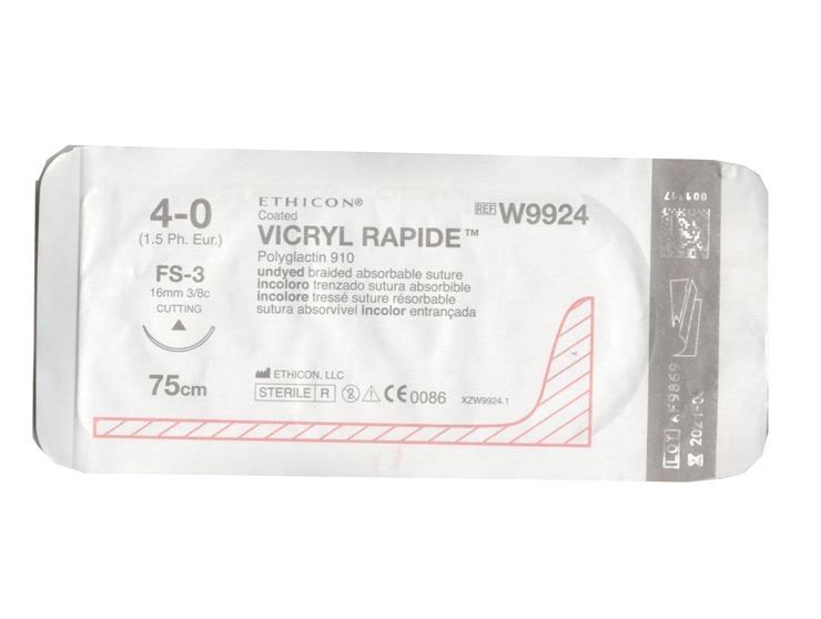 Johnson & Johnson Ethicon Coated Vicryl Rapide Sutures, 75 cm (l), Size 4/0 + 16mm FS-3 CC Needle (Pack of 12)